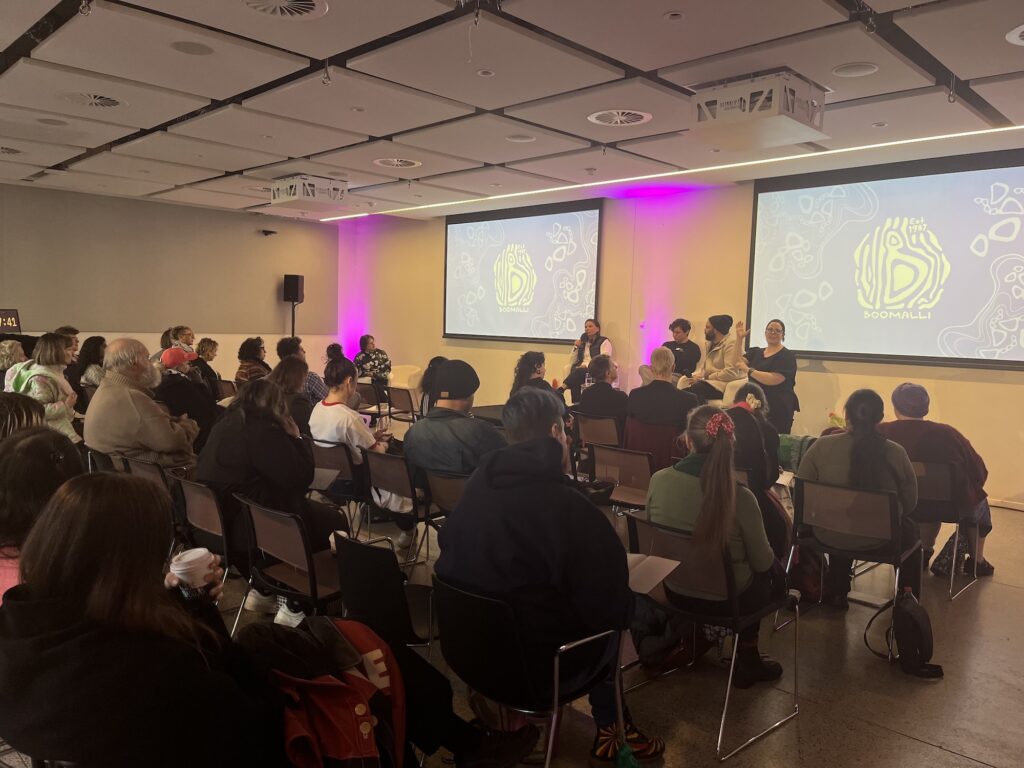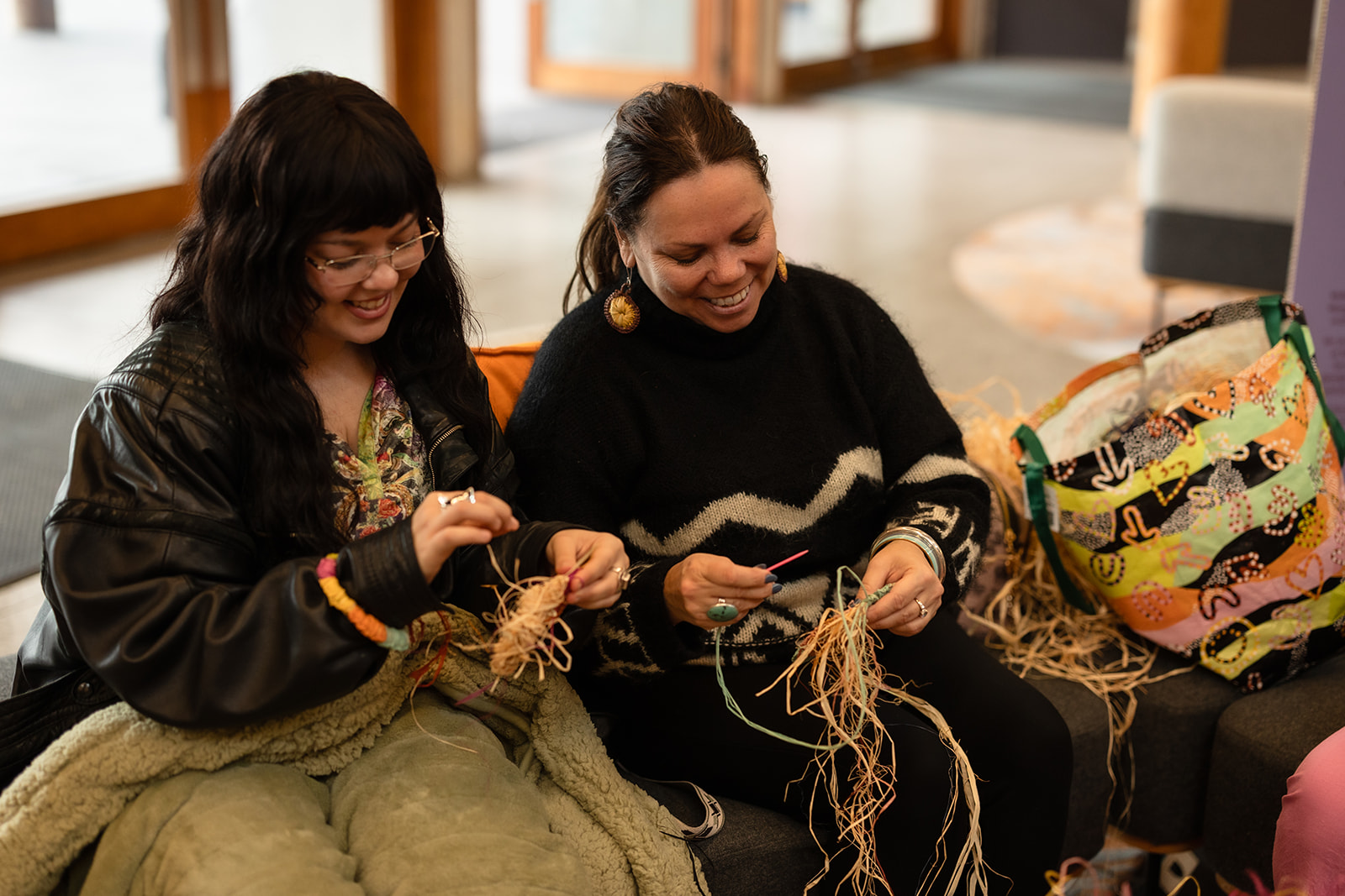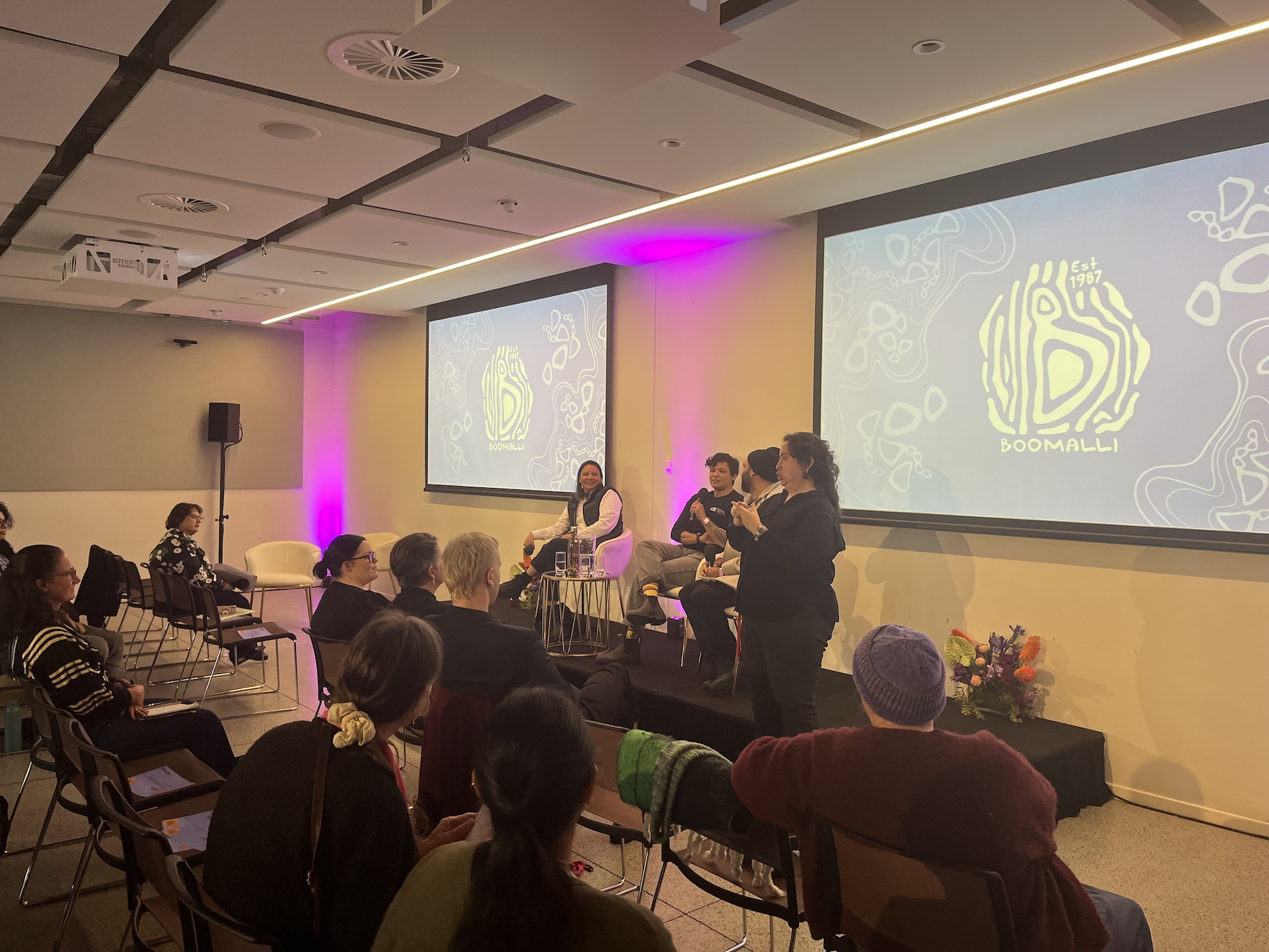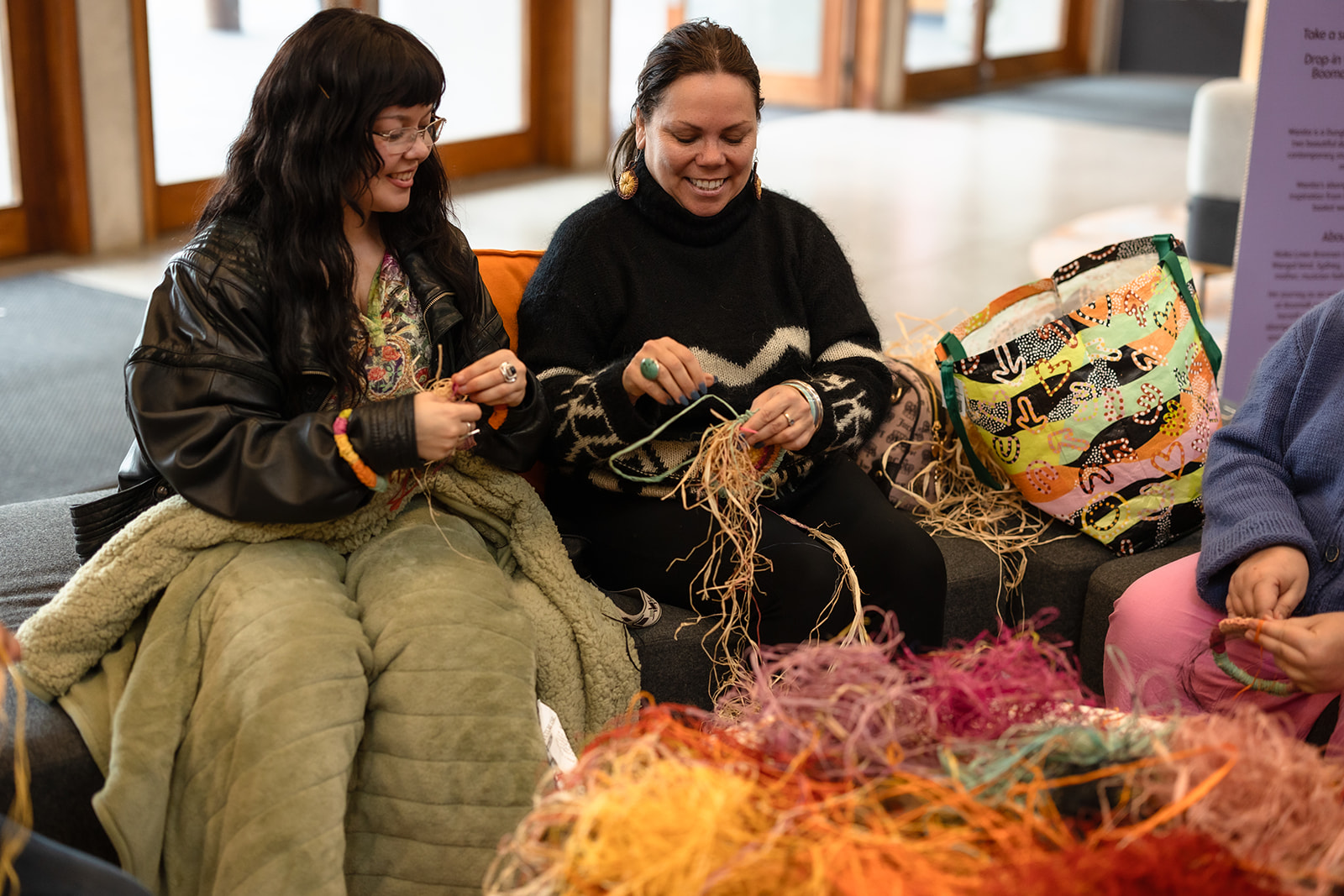 Boomalli partnered with Inner West Council for their inaugural Creative Toolbox Symposium at Marrickville Library. Creative Toolbox is a three day symposium for artists and creative professionals. As part of the event, Boomalli presented a panel discussion titled Within Sight – NSW Aboriginal Art in the Public Sphere, featuring Boomalli curator Kya Kum-Sing and artists Jasmine Sarin and Dennis Golding. The event also included a drop in style weaving workshop with Boomalli artists Wanita Lowe and Nioka Lowe-Brennan.