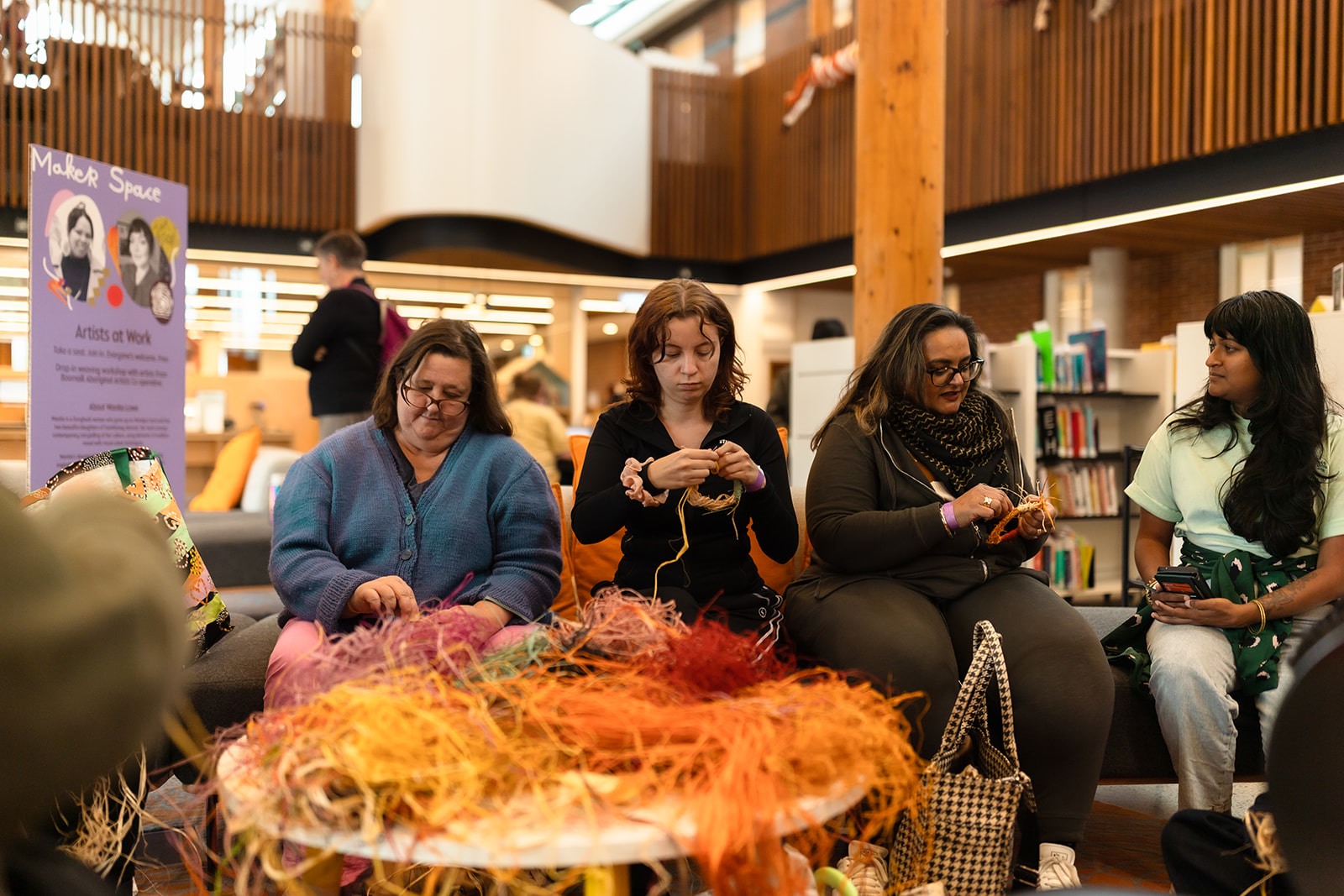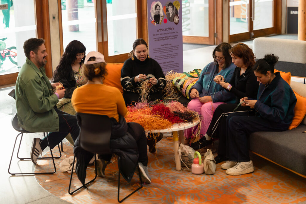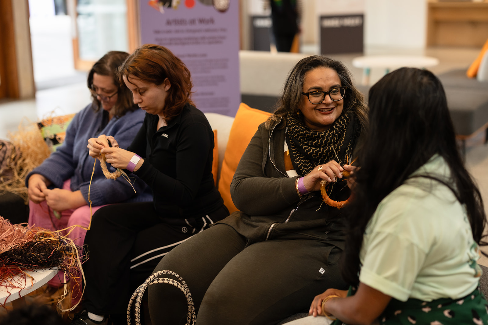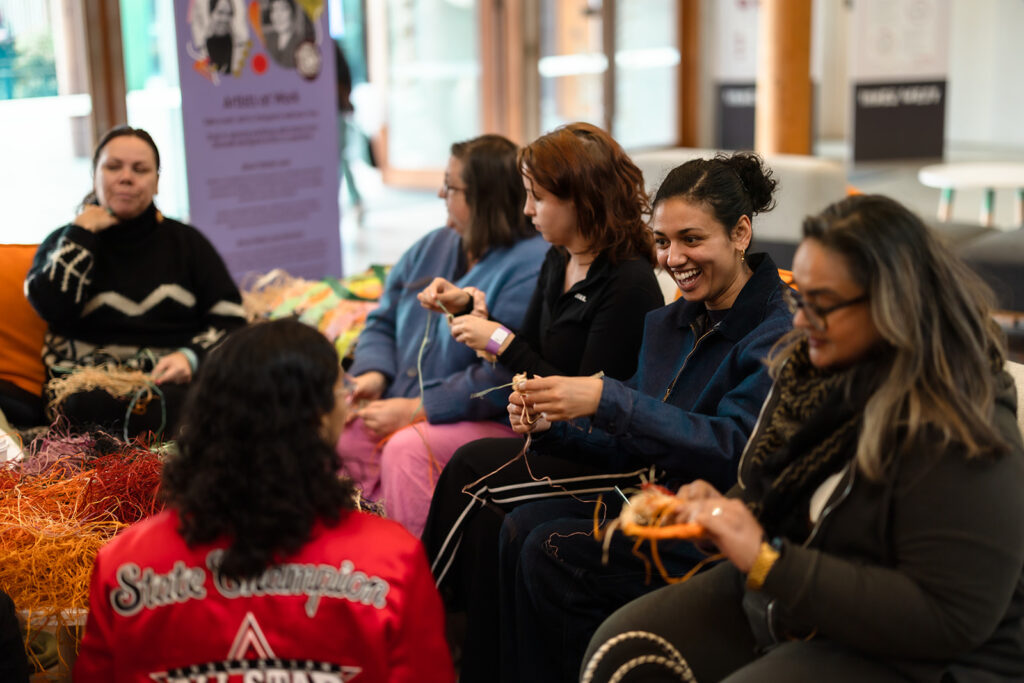 Boomalli partnered with Inner West Council for their inaugural Creative Toolbox Symposium at Marrickville Library. Creative Toolbox is a three day symposium for artists and creative professionals. As part of the event, Boomalli presented a panel discussion titled Within Sight – NSW Aboriginal Art in the Public Sphere, featuring Boomalli curator Kya Kum-Sing and artists Jasmine Sarin and Dennis Golding. The event also included a drop in style weaving workshop with Boomalli artists Wanita Lowe and Nioka Lowe-Brennan.