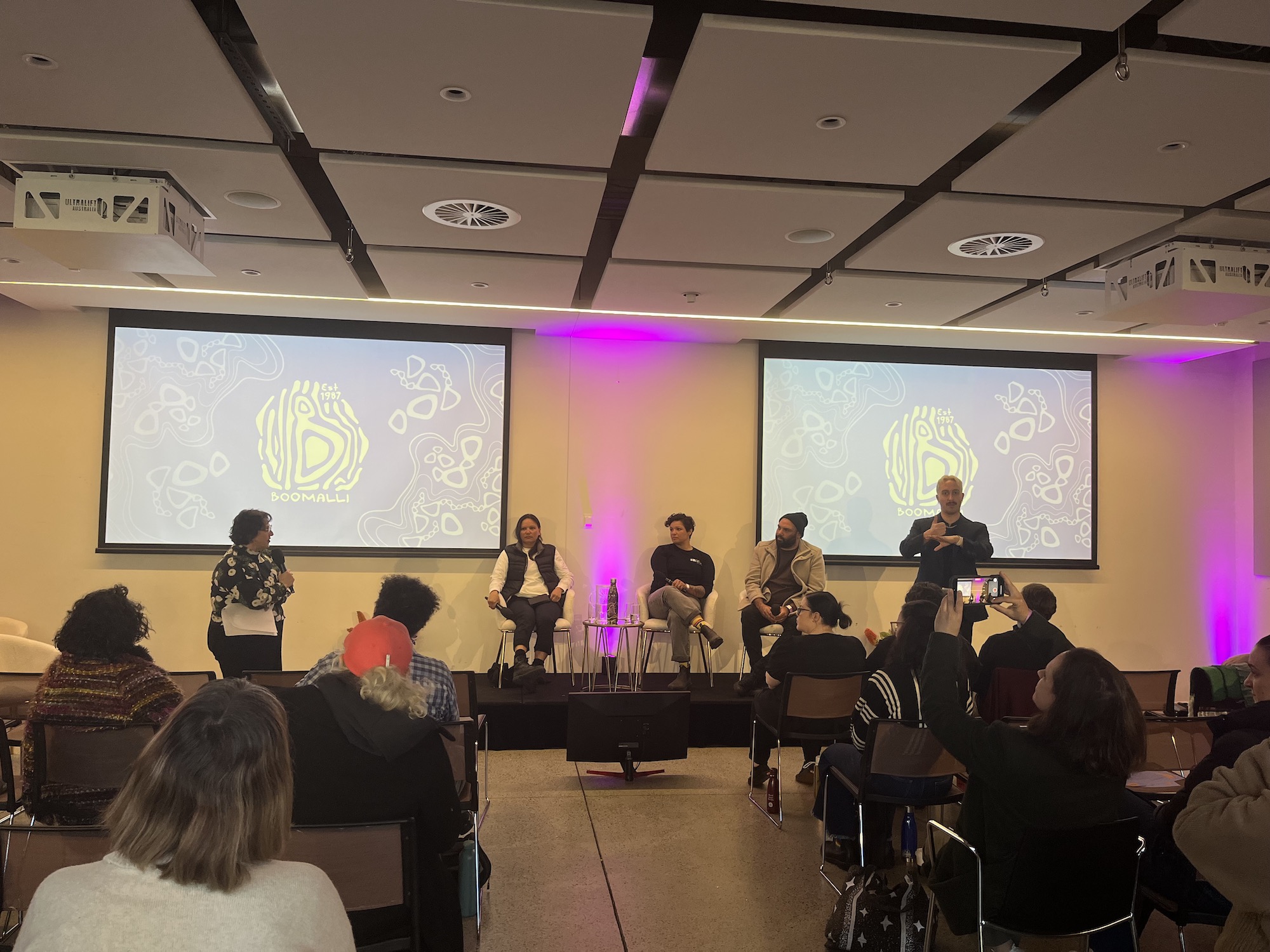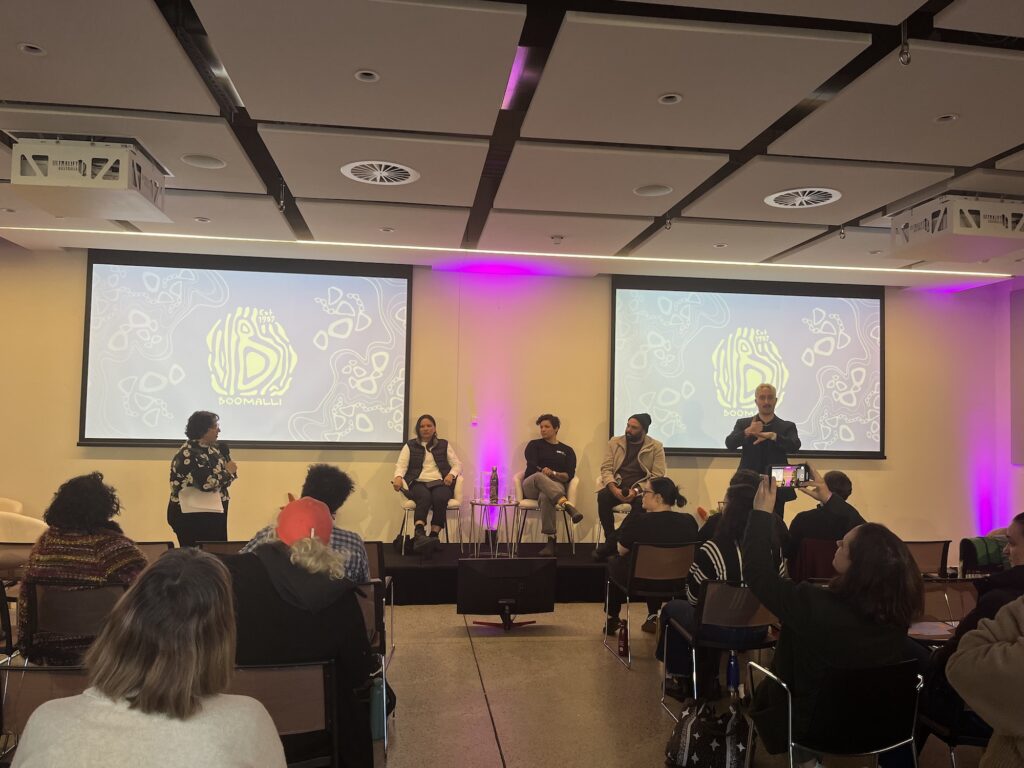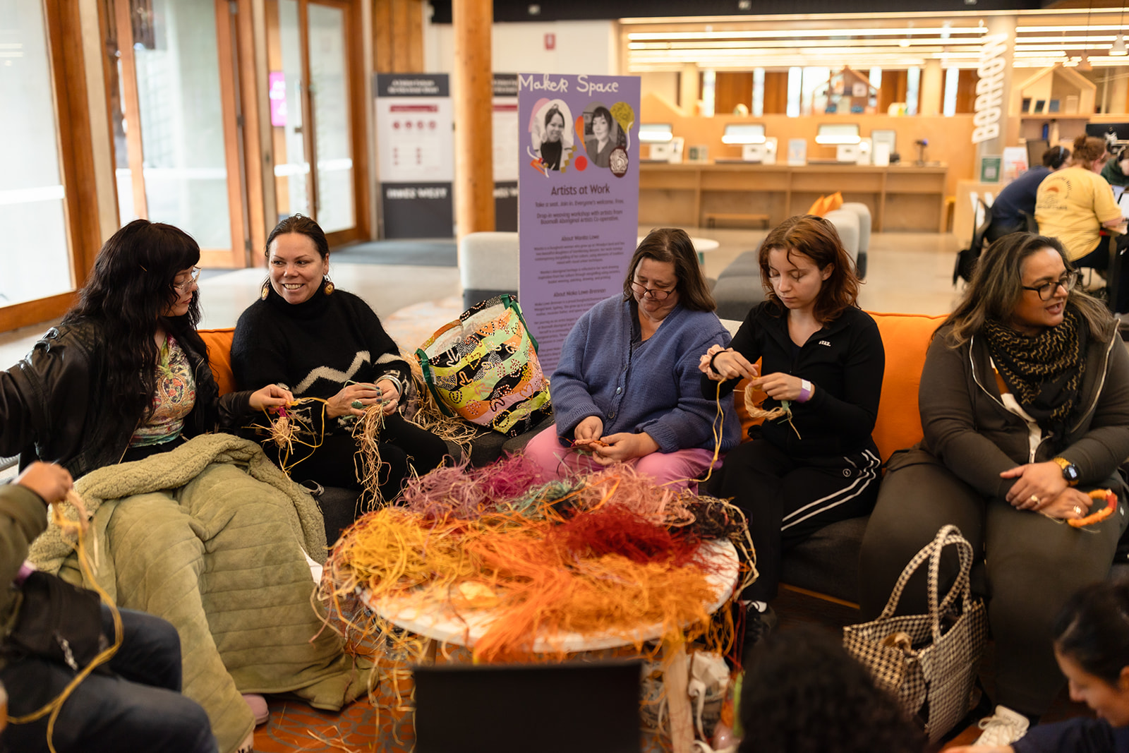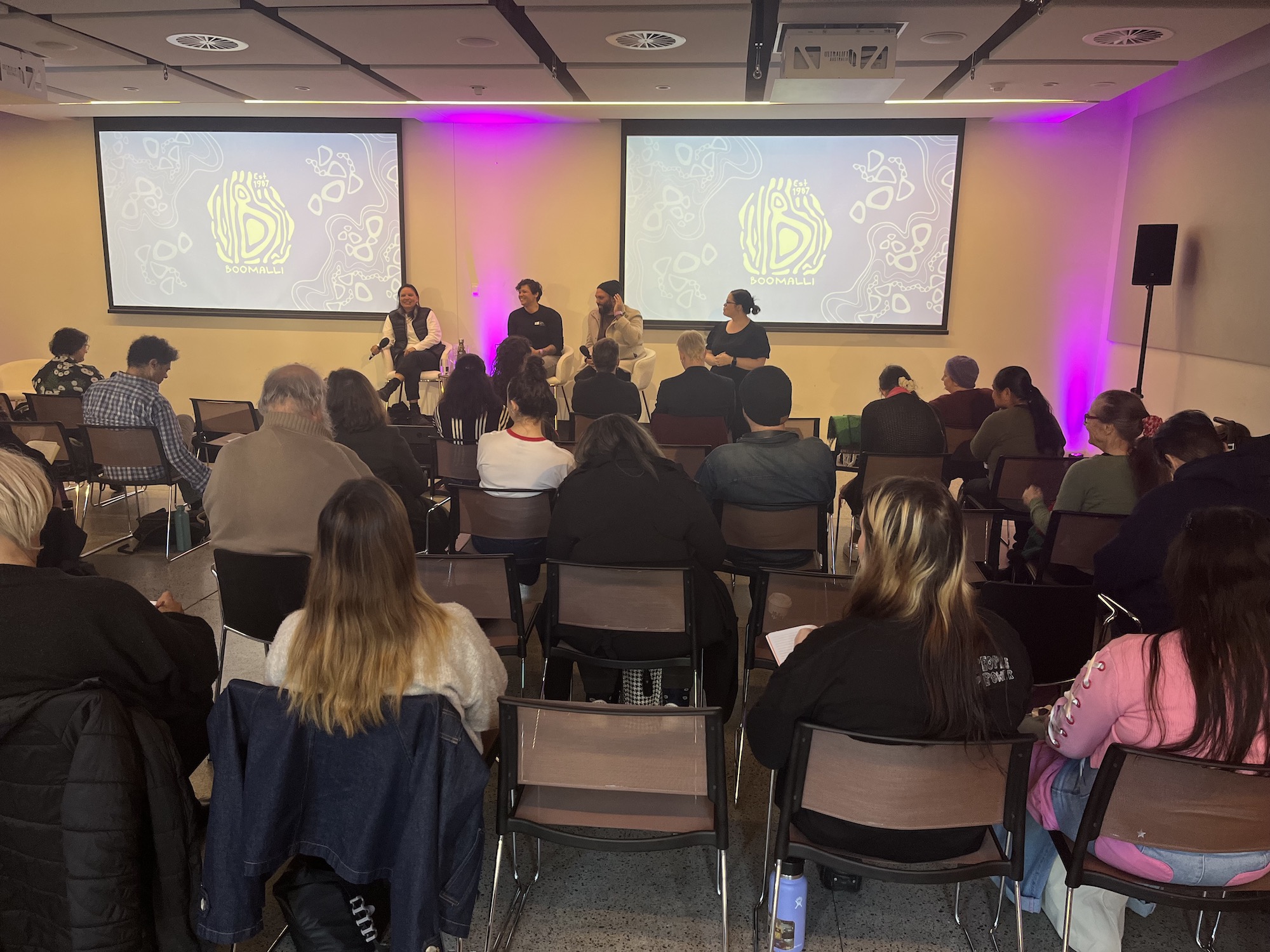 Boomalli partnered with Inner West Council for their inaugural Creative Toolbox Symposium at Marrickville Library. Creative Toolbox is a three day symposium for artists and creative professionals. As part of the event, Boomalli presented a panel discussion titled Within Sight – NSW Aboriginal Art in the Public Sphere, featuring Boomalli curator Kya Kum-Sing and artists Jasmine Sarin and Dennis Golding. The event also included a drop in style weaving workshop with Boomalli artists Wanita Lowe and Nioka Lowe-Brennan.